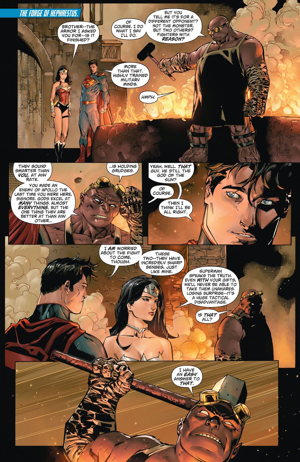 Diana takes Clark to visit her brother Hephaestus' forge in Mount Etna. The plan is to go try to convince the Smith of the Gods to create armor for Superman when he has to face Doomsday. But we also get to see a fun interlude of the boyfriend meeting his girlfriend's family.